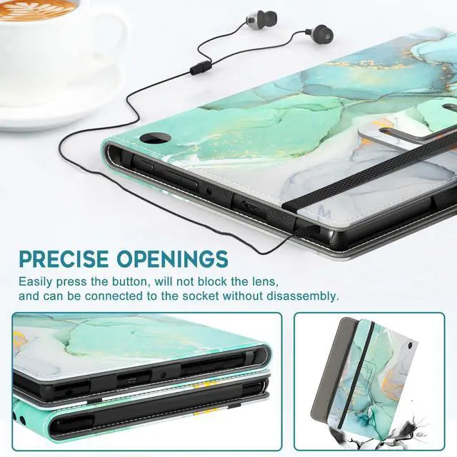 VORI Case for All-New Kindle Fire HD 10 Tablet and Fire HD 10 Plus (13th/11th Generation 2023/2021 Release) - Slim Folding Stand Folio Cover with Auto Wake/Sleep & Hand Strap, Emerald Marble