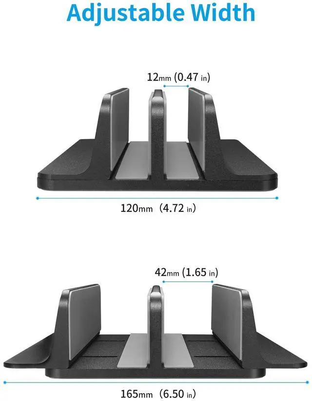 Dual Dock Design: Maximize your workspace with this stand that can cradle two laptops vertically at the same time, perfect for a neat and organized desk.