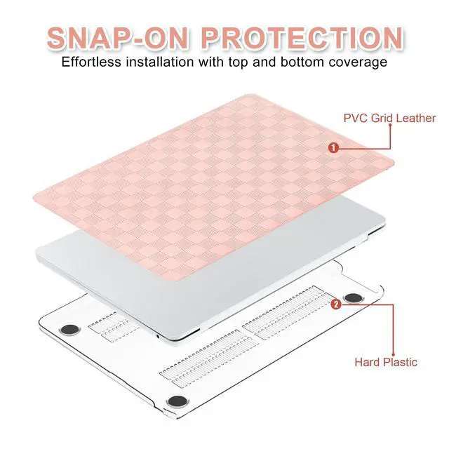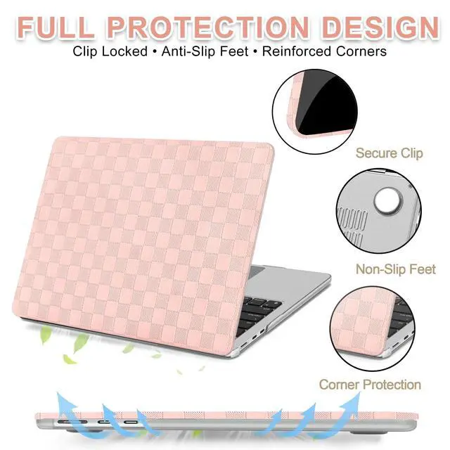 Case Only compatible with Newest MacBook Air 13.6 inch 2026 2025 2024 2023 2022 Release M4 M3 M2 Chip with Liquid Retina Display & Touch ID (Model: A3240 A3113 A2681). Please kindly check the model number "A3XX" on the back of the laptop before your purchase. Not compatible with other MacBook models ^^ Made of elegant pvc checkered leather coating durable plastic to provide your Laptop with great all round protection. Compact design and comfortable touching make your device fashionable and attractive ^^ Cut out design, Logo shine through from the top case. Full access to all buttons and features. Snap on design, easy to put on and snap off. All ports are accessible without removing the case ^^ The perfectly matched vent slots in the bottom case to keep your laptop cool. Tailored for macbook air m4 13 inch case, four rubberized feet keep your device firmly in place ^^ Including 1 pink checkered top case, 1 matte clear top bottom case and 1 pink keyboard cover. If you have concerns about the products quality, our customer support team is ready to help with any issues or questions