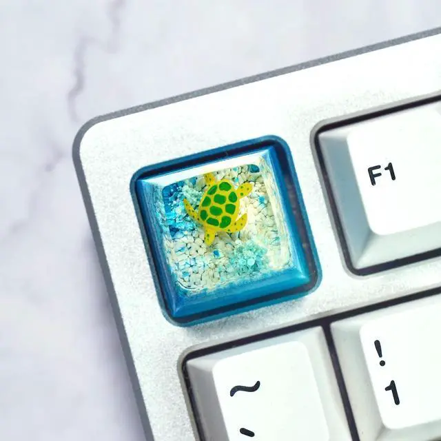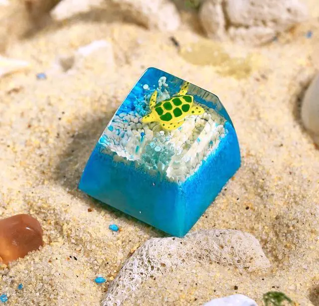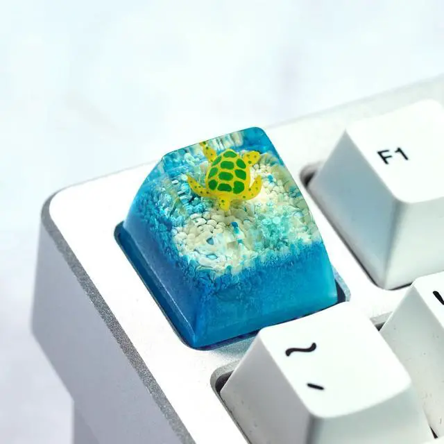 Sea Turtle Artisan Keycap Light Blue and White Coral R1 SA Profile Custom Sea Creatures Keycaps 1U ESC Handmade Gaming Resin Key Cap Cherry MX Switch Compatible Mechanical Keyboard Turtle Lover Gift