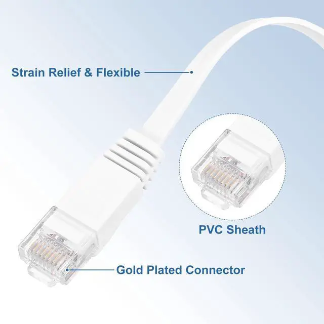 Package: 1 x Cat6 Ethernet Cord + 20 x 7mm Black Clips ^^ The Ethernet cable Cat 6 is made of 8x copper core, 150D anti-break wire, equipped with gold-plated RJ45 connector, which can reduce information interference and make the network faster and more stable. Flat cable shape, can save space and prevent tangling. ^^ Cat6 Ethernet cable has two RJ45 connectors on both ends, which is very suitable for network switches, routers, network adapters, hubs, modems, laptops, couplers, gaming and other devices with RJ45 connectors, and is used in computer rooms, offices, hotels, Internet cafes and other scenes. ^^ Avoid bending or twisting the network cable, which may affect its performance and damage the internal wiring and make sure the network speed matches the fixed network speed.