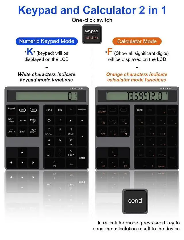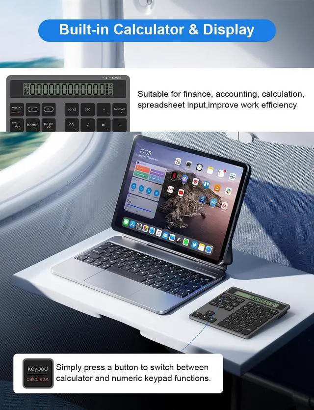 [Number Pad & Calculator 2 in 1 Design] The innovative 2 in 1 function perfectly integrates the external numeric keypad and independent calculator, and supports one-key switching mode. Meet the two needs of data entry and real-time calculation, improving office efficiency and convenience.