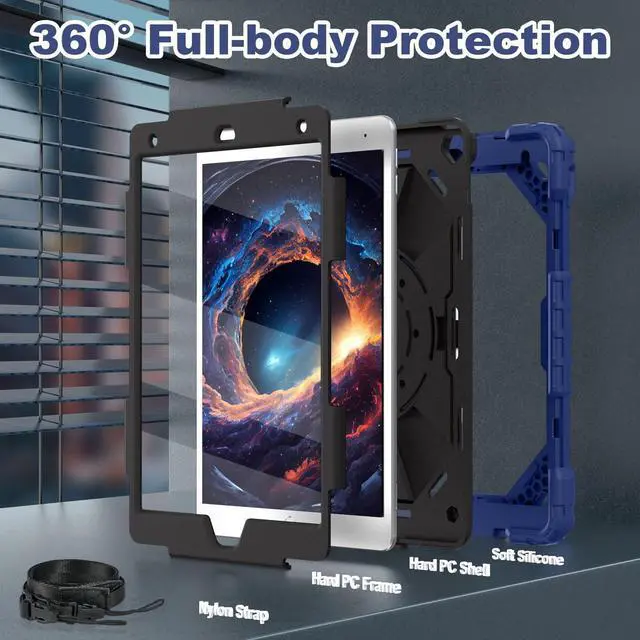 Generation 2019(Model: A2197/A2200/A2198). Please check your ipad to avoid the incorrect model number. ^^ 360 Rotating Stand & Folding HandleiPad 9th generation case with a multifunction handle that also rotating 360 and folds 180 to give you multiple angles between 30-80 degrees of horizontal or vertical orientation for easy viewing, typing or drawing. ^^ Pencil Holder & Adjustable Shoulder StrapiPad case 9th generation with pencil holder. Also offers adjustable shoulder strap, allow you use or carry much easier, perfect for a variety of people and occasions. ^^ Mil-Grade Drop ProtectionThe 9th gen iPad case is made of shockproof PC and soft silicone upgrad grade thickened corners & shock-proof design, with built-in screen protector to prevent daily scratches caused by rough surfaces or sharp objects and raised edges to protect camera, super shock absorption provides full body protection! ^^ Precise CutoutsiPad 9th generation kids case perfect fit all controls to easily access all iPad functions without taking out of the case. Great holiday/birthday gift for family and friends! ^^ Best ServiceIf you have any questions about this iPad case 10.2 inch iPad 9th generation case for kids, please feel free to email us, we will provide you with the fastest and best solution!