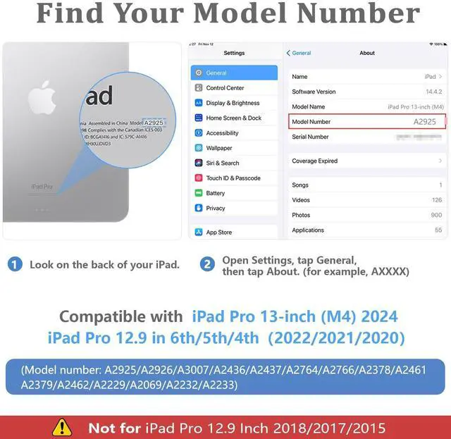 Generation2022/2021/2020 released)Model number: //////////////. Not fit any other iPad models. ( ) ^^ Supports Pencil Pro and Pencil (USB-C)The Pencil can be magnetically attached to the top of your iPad pro 13-inch 2024 m4, and supports wireless charging. You can place the Pencil to the stylus loop at any time to avoid losing it. ^^ Multi-functional Professional Design Multiple slots to set up multiple horizontal stand angles for watching movie or typing. The front document card pocket to keep notes, cash, cards. Built-in hand strap (one-handed operation). ^^ Full ProtectionClassic and professional design. PU leather exterior protect your iPad pro 13" from scratches, impacts, dust or any other daily damage. ^^ Support Touch ID and Auto Sleep/Wake Featuresmart folio for ipad pro 13-inch m4 cover supports auto wake & sleep function, which wakes or puts your device to sleep anytime. External elastic band enhances magnetic closure to save your electricity.