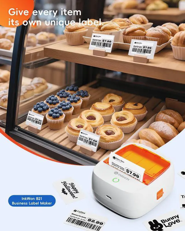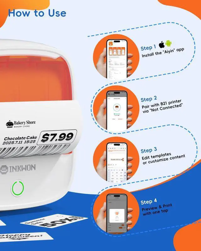 InkWon B21 Label Maker, 2-Inch Bluetooth Label Maker Machine with 3 Tapes Thermal Label Printer Ideal for Small Business, Address, Barcode, School, Office, Home