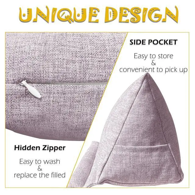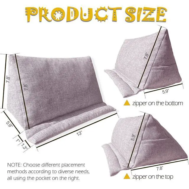 Hands Free - Prop the books or e-readers up to liberate your hands for anything else. You can read comfortably with it placed on the lap/couch/desk or in the bed/kitchen. ^^ Size Compatible - These soft wider stands are perfect for heavy books, large tablets, kindles, and iPads. The front roll is tightly packed and holds the item well without obscuring the screen. ^^ Unique Design - The hidden zipper in the bottom makes the pillow stand easy to wash. The right pocket can store some small things for easy use, such as headphones, pens, etc.