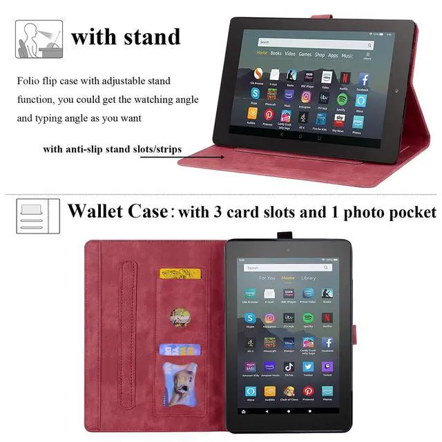 with Card Pockets: Fire HD 8 tablet 12th/10th Gen Book vintage wallet sleeve case has card slots, for storing your credit cards, cash, photos, etc. 6. Stylish & Embossing