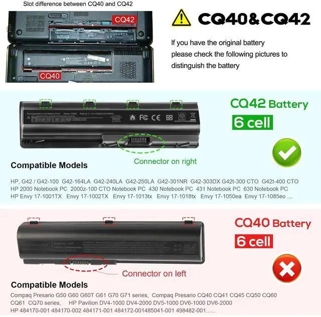 Note: This battery fits DV6-3000 / DV6-3019WM / DV6-3025DX / DV6-3013CL / DV6-6000 / DV6-6004SA / DV6-6008EG / DV6-6013CL Series battery, doesn't fit DV6 DV4, CQ40, CQ45, CQ60, CQ61, CQ71 Series Battery ^^