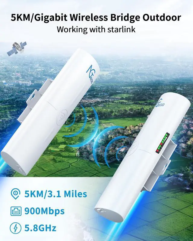 HIGH-SPEED TRANSMISSION: The 5.8 GHz wireless bridge features wireless transmission rates of up to 900 Mbps, delivering more than 150 Mbps of throughput. No need to lay wires or bury cables to realize fast and reliable network data transmission.