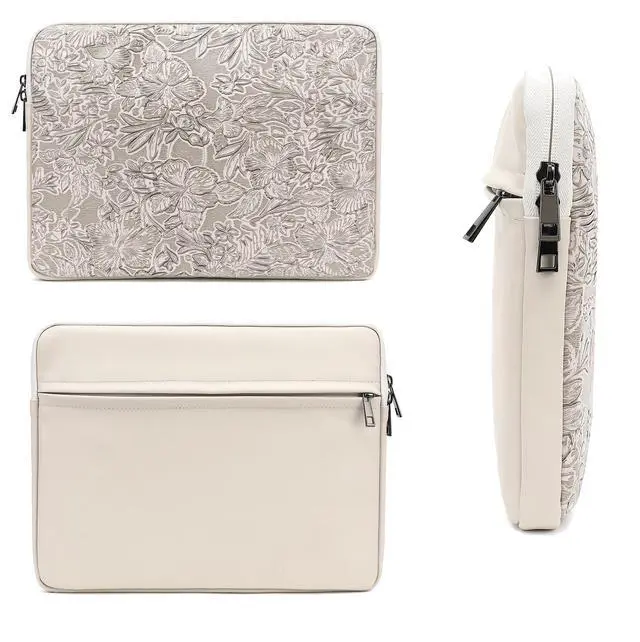 Canvaslove Embossing Floral Pattern PU Leather Laptop Sleeve Case with Pocket for MacBook Pro 16 inch and 16 inch-16.2 inch HP, Lenovo, Dell, ASUS, Acer Notebook Computer (Ivory White)