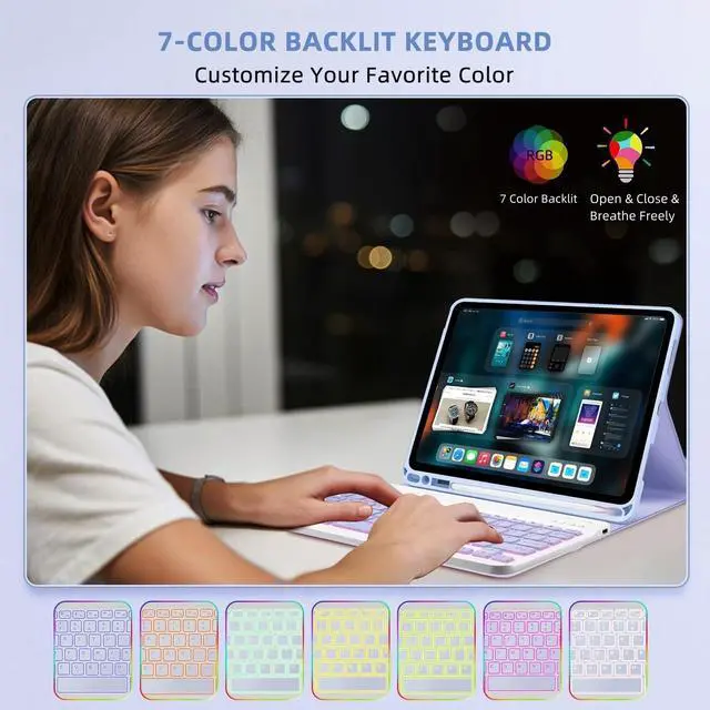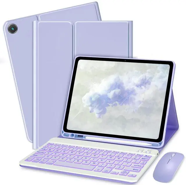 Note: Please check whether your for Galaxy Tab tablet model is compatible before purchasing. (Click "Settings-System-About Tablet Model") ^^ 7-Color Backlit KeyboardJust press the light control button to easily adjust to your favorite different colors, and there is also a breathing light backlight mode that can be switched automatically. The Tab A11 Plus 11-inch tablet case provides an excellent visual experience when typing in a dark environment. This keyboard features a scissor mechanism for a quiet, responsive, and comfortable typing experience. Its magnetism base allows for easy detachment, and it's equipped with shortcut keys, making it ideal for work and travel ^^ with Pen Slot and MouseBxomteng Tab A9+ / A9 Plus 11 inch protective case provides the best protection. Built-in Pen Slot holds the stylus securely, always ensuring it is as safe as the tablet. The mouse has a comfortable and non-slip wheel that slides smoothly, whether it is clicking, scrolling or browsing the web, it can easily cope with it. Slim body, easy to carry. (This product does not include: pencil, tablet! ) ^^ Multiple Viewing Angles, Folding CaseThe case has three built-in anti-slip grooves and supports 100110 and 120 tilts, which can fix the tablet at three angles and provide strong support. The case folds like a book, leaving your hands free for typing, reading or watching ^^ Precise CutoutsIts precise cutouts allow easy access to all controls and features, which provides all-around protection for Galaxy Tab A11+ / A11 Plus 11 inch tablet, greatly reduces the damage to your tablet caused by collisions. The soft TPU inner shell adopts a honeycomb design to facilitate the heat dissipation of the tablet and extend the use time ^^ Magnetism ClosureThe case is magnetism, which keeps the case firmly closed while traveling. The tablet will automatically sleep or wake up when the case is closed or opened.