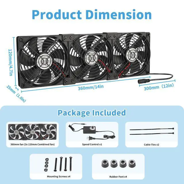 Wide ApplicationsThree 120mm fans powered by a wall-wart. its really easy to adjust their speed with a knob. it works great for DIY fan or as an additional cooling fan for your gaming needs, such as plant cabinet, Crawl space, Basement, Laundry room, Garage, Attic, RV refrigerator, X-box, ps4, Amplifier, kitchen window, server, humidifier, mushroom growing, sound system, etc. ^^ Variable Speed with AC PlugThe variable speed fan is great for cooling electronic components. This is especially true when components are used in a cabinet with limited air flow to help cooling.