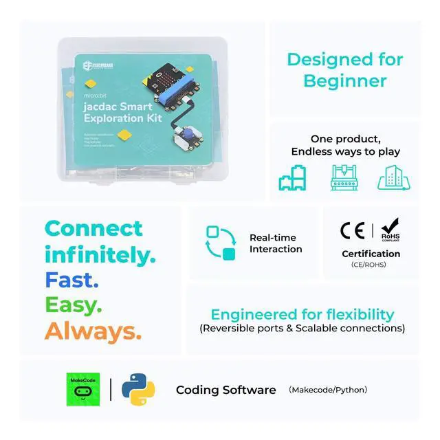 Plug and Playmicrobit Jacdac kit supports plug and play functionality, allowing modules to be added or removed at any time during operation.The microbit makecode system can automatically identify the type of sensor, and the microbit Jacdac sensor can provide real-time feedback on sensor information.
