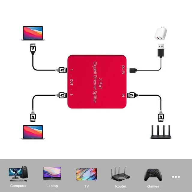 Devices Simultaneously Networking: The splitter supports 2 devices to be connected simultaneously, allowing you to enjoy fast and stable network speeds for multiple devices, such as computers, game consoles, smart TVs, and routers. ^^ 1 In-2 Out