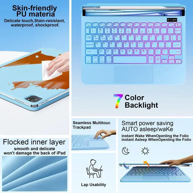 Air 13/Pro 12.9: One of the standout features of this case is integrated multi-touch trackpad. With a variety of trackpad gestures, you can turn your iPad into a highly efficient laptop, making tasks like swiping and scrolling a breeze. Enhance your productivity with keyboard shortcuts, designed to provide swift access to iPadOS features for a seamless and efficient operation. This functionality opens up new ways to interact with your iPad, enhancing productivity and user experience. ^^ Case Keyboard for iPad with