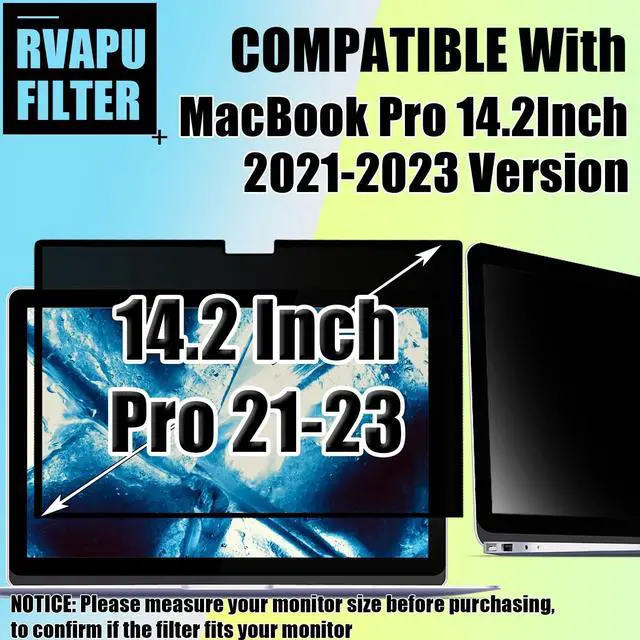 When you don't need it, it provides a quick and simple way to remove your macbook privacy protector. ^^ Perfect for Travel and Open WorkspacesThe MacBook Pro Privacy Screen Filter is the ideal solution for healthcare providers, mobile workers, commuters, students, and business travelers. Now you can stay compliant and safeguard sensitive corporate information while working in airplanes, subways, airports, and public areas. ^^ Compatible DevicesDesigned for Apple Macbook Pro 14.2 Inch (2021-2023).