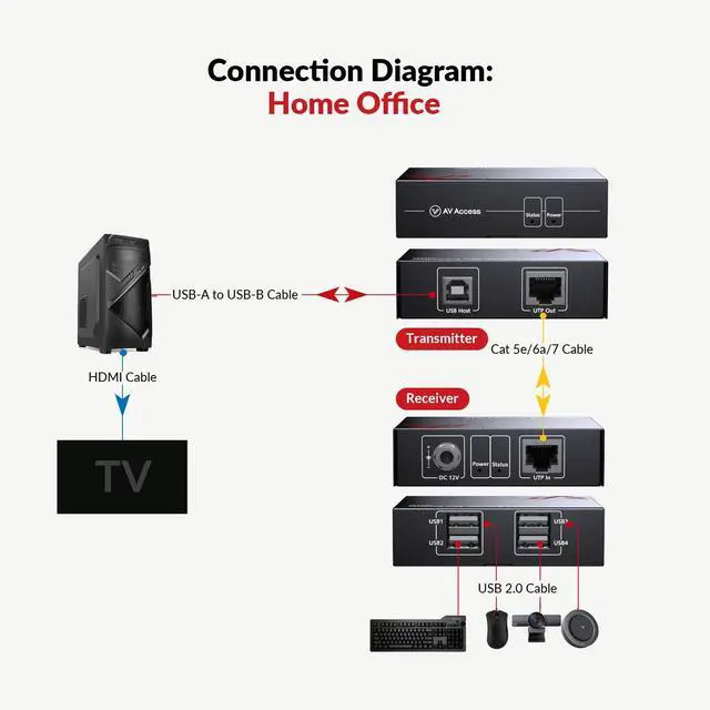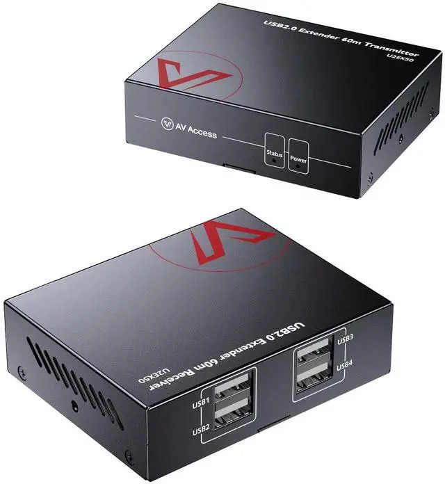 Long Range USB ExtensionPowered USB Range Extender supports high-speed USB 2.0 (Up to 480Mbps) over single Cat5e/Cat6 cable up to 196 ft (60m); Supports all operating systems (Windows, MacOS, Android, Linux); High compatibilty with USB 1.1 and USB 2.0 peripheral devices. Certificated by FCC, CE. ^^ Plug and Play without Driver480Mbps High-speed and stable transmission for PC, PS5, Webcams, Gaming, Video Conference, Surveillance System; Supports two web cameras simultaneously; Mounting Ear for easy installation. ^^ One Power Supply for Both SidesTransmitter is powered by USB Host port; Receiver is powered by lockable DC 12V power adapter, which has a locking connector for a solid installation.
