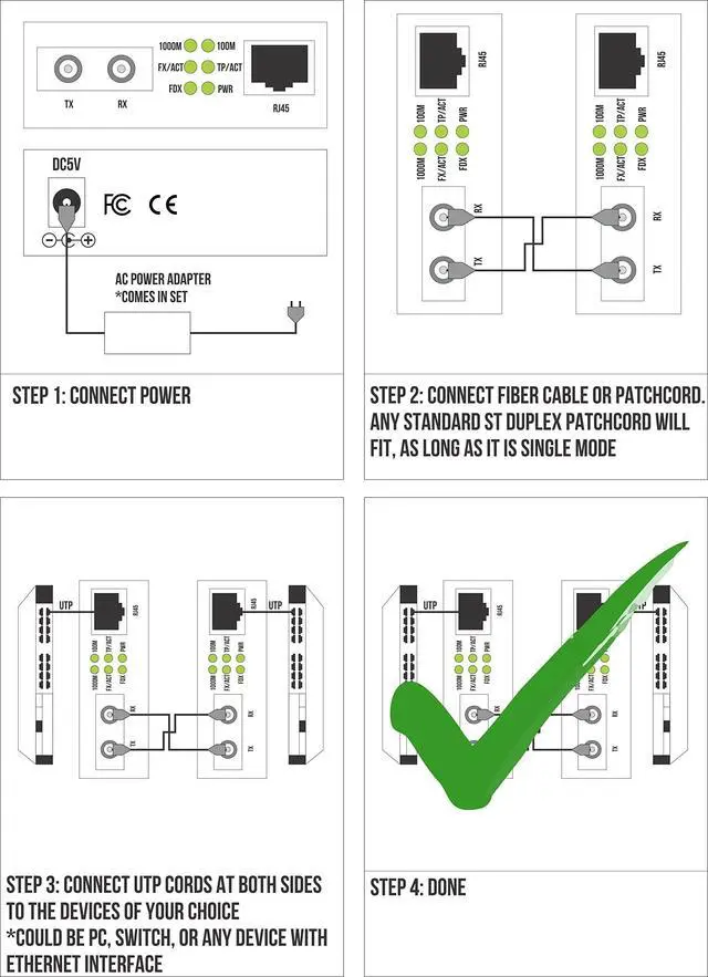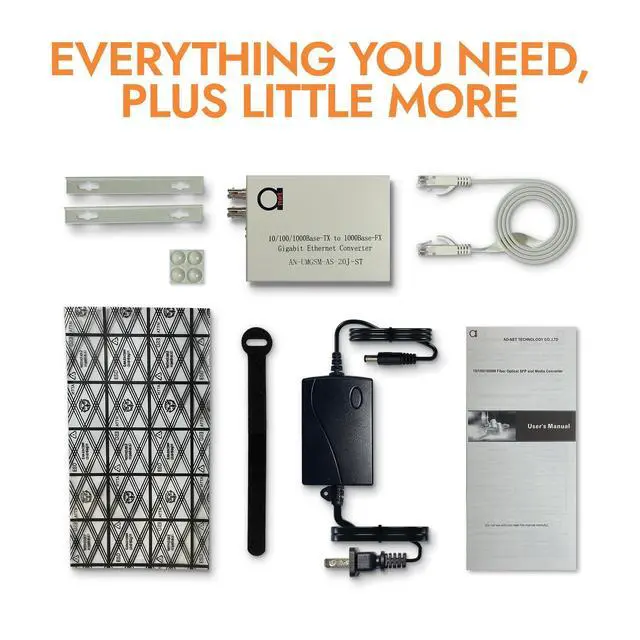 Extend your Gigabit or Fast Ethernet Network Over Single Mode Fiber Up to 20 km With EaseAN-UMGSM-AS-20J-ST Will Automatically Detect 10 Mbit/s or 100 Mbit/s Fast Ethernet or 1000 Mbit/s Gigabit port - You just need plug in the cables and it will work right away! Powering it up? Easy, it will come with AC power adapter in set, just plug it! All These Important Features Are All Supported: Compliant with IEEE 1000Base-T and 1000Base-LX One 10/100/1000Base-T RJ-45 port autosensing featured One 1000Base-LX Single Mode Dual Fiber port Port with ST type connector - up to 20 km distance Status LED indicators for Power, Link/Activity, Full-Duplex, and
