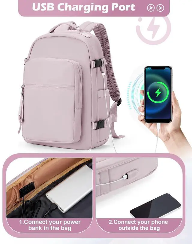 bergsalz Vacuum Backpack With Pump,Travel Laptop Backpacks For Women Men,Airback Backpacks With Vacuum Compression Bags Seal Packing,Carry On Backpack, Personal Item Travel Bag Pink Purple