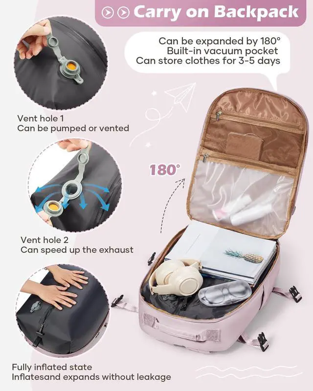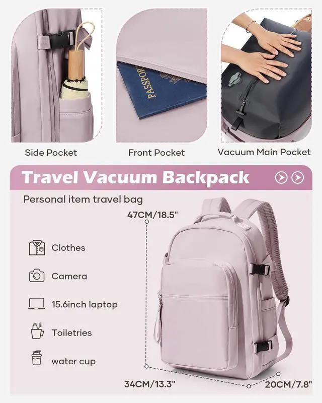 DescriptionVacuum Backpack With Pump, Travel Laptop Backpacks For Women Men, Airback Backpacks With Vacuum Compression Bags Seal Packing, Carry On Backpack, Personal Item Travel Bag