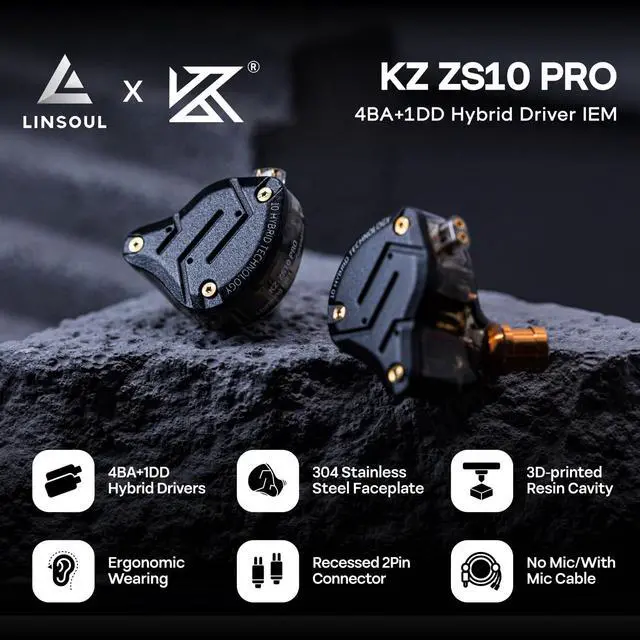Upgraded 4BA+1DD Hybrid Earphones &Magnetic Dynamic Unit]As an upgraded version of K2 ZS10, the Pro features self-customized balanced armatures which include two 30095 drivers for highs, two 50060 drivers for mids. With this configuration, the sound is transient, dynamic, and bright in all respects. While maintaining the previous performance, the highs of this model is extended beyond 40kHz lt also adopts the second-generation Tesla double magnetic dynamic unit ^^ Exquisite Craft The faceplate is made of 304 stainless steel while the cavity is made from imported resin. The two different material not only presents an elegant look and shimmer but also be practical and durable.