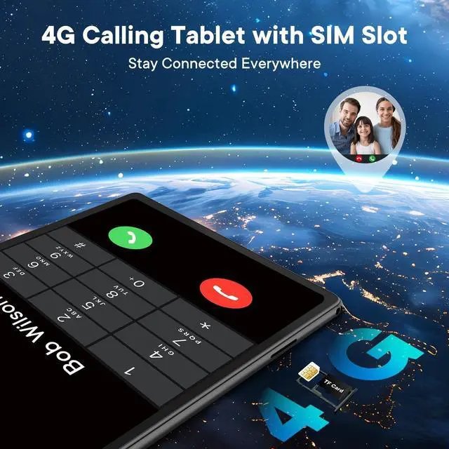 4G LTE Tablet with SIM Slot & GPSKeep your family connected and never lose your waythanks to 4G LTE and built-in GPS in this 8-inch Android tablet. This unlocked tablet phone supports cellular data for fast mobile internet, so you can browse, stream, message, and make video calls via your favorite apps. Multi-system GPS delivers accurate navigation for driving, hiking, or weekend adventures. Ideal for travelers, remote workers, and families on the go. ^^ Powerful 8-Inch Tablet Built for Work, Play & Everything In BetweenPowered by an efficient octa-core MediaTek Helio G80 processor and up to 12GB RAM(4GB physical+8GB extended virtual RAM), this unlocked tablet delivers smooth performance for streaming HD shows on Netflix, video calling on Zoom, gaming on Roblox, or running multiple work apps on the go.