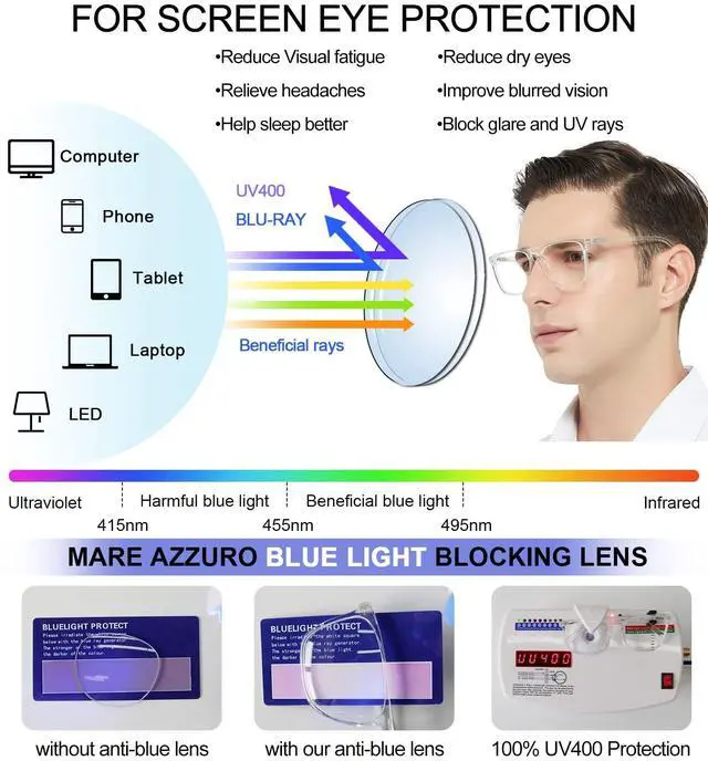 Relieving eye strains and headache for reading, watching TV, gaming, using computer or mobile phone, to get a better sleep at night.