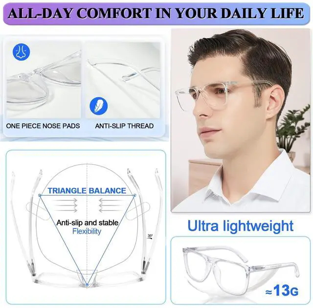^^ High definition: This lightweight computer readers effectively filters & blocks glares; HD blue light lenses give you bigger field of view without turning your neck to easily get a clear vision; sturdy & scratch resistant; has higher precision as well, which are perfect for reading, working or enjoying digital time at the office or party, at home, in bed. ^^ Comfortable fit - the mens blue light glasses is made lightweight frame with anti-blue light lens; with flexible spring hing wont pinch your face, so great fit for bigger and wider face; extra large reading glasses give you a broad vision without turning your head. Ultra-light blue light readers make you all-day comfy while reading, web surfing, gaming and screen working. ^^ Great value - bluelight reading glasses 300; A small screwdriver to tighten the screws regularly; A glasses rope to avoid loss and breakage; A soft cloth to keep readers clean; A portable carrying bags to avoid scratching; as a perfect gift for family and friend!