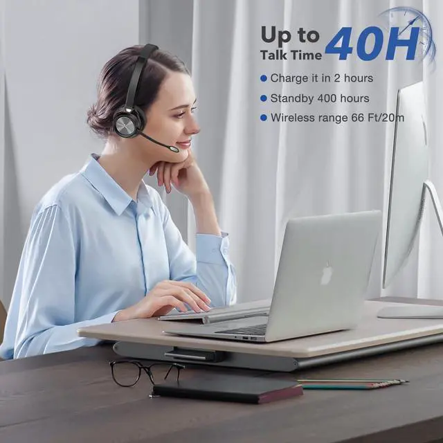 ^^ Long Battery Life: With a talk time of 40 hours and standby time of 200 hours, this wireless PC headset with mic shows an exceptionally long battery life, offering unparalleled convenience for extended use without the need for frequent charging.
