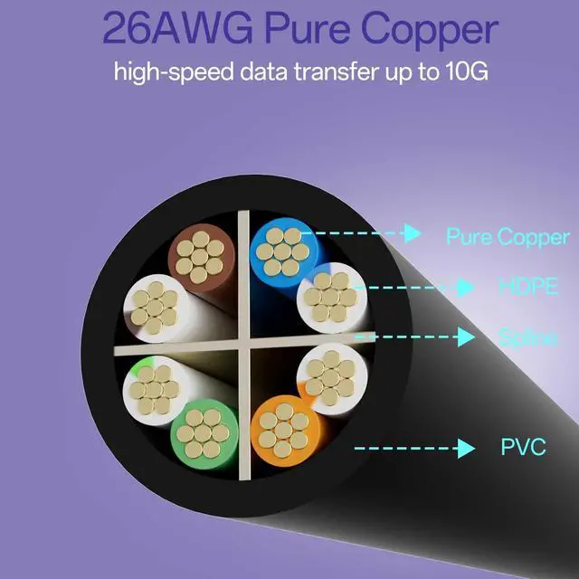 High Performance: Cat 6 ethernet cable 150ft support up to 10 Gbps and 550 Mhz application. Cat6 patch cable are made of 26AWG pure copper with reliable performance. Ethernet cables compliant with ANSI TIA 568.2 D standard.