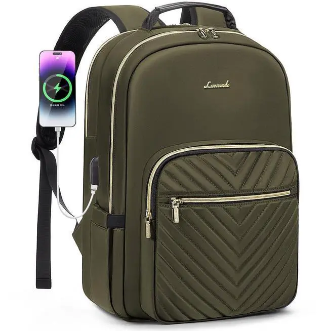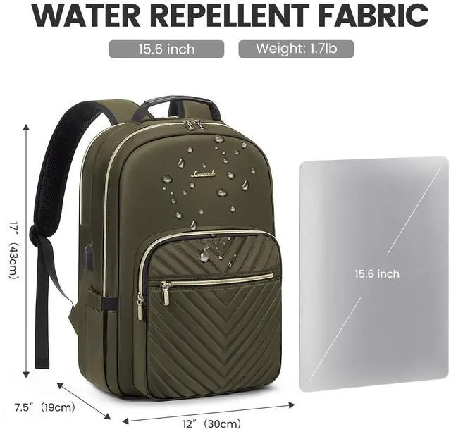 Upgraded Laptop Backpack Women: Classic V-shaped embroidery thread. Upgraded double LOVEVOOK no-slip metal zippers, water resistant Nylon fabric with polyester lining, ensures long lasting usage. Total of 4 compartments and 16 pockets for your computer, A4 folder, bottles, umbrellas, clothes, work supplies, college supplies and travel essentials.