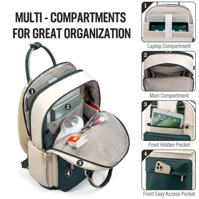 • MULTI COMPARTMENTS Total 4 compartments: 1 separate laptop compartment, 1 main compartment and 2 front compartments provide multi-functional for your computer, A4 folder, books, clothes, etc.