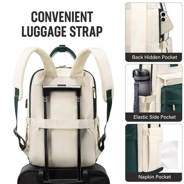 • ON-THE-GO CONVENIENCE With a luggage strap on the back, it allows the backpack to securely fit on the handle of a rolling suitcase - ease the burden in your journey. Back hidden pocket sits up against the wearers body. Its difficult to steal your valuables without you feeling it. Let's travel.