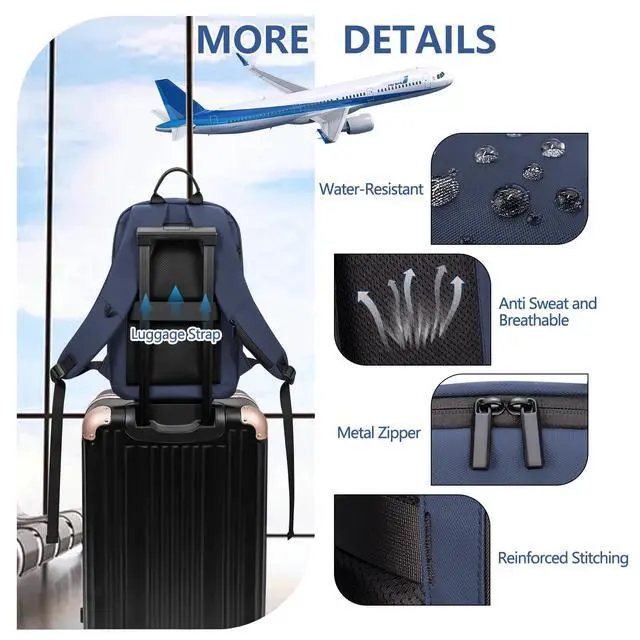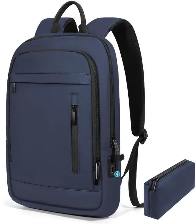 . This anti-theft backpack features a unique hidden zipper design on the surface to protect your valuables.. The main compartment and the second compartment have multiple multi-functional pockets designed exclusively for storing small items. ^^ USB Charging PortThis office backpack has an external USB charging socket and a built-in charging cable to connect to a mobile power source (power bank is not included). External usb port to charge your electronic devices directly. No need to open your backpack to use your electronic devices at any time. And it comes with an air tag attachment strap on the bottom of the pack that can be used!!! ^^ Lightweight & WaterproofThe back and shoulder straps of the thin backpack are designed with breathable sponge mesh, which will make you feel very breathable and comfortable.