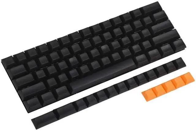 DetailsThis link is only the keycaps, no keyboard included. The keycap loading board is only to take photo, not included in the sold package. We will pack the keycaps in our own carton. This keycap set is DSA profileThe keycap is made of durable PBT material, the thickness is about 1.5 mm. Included KeycapsANSI 61 keys+Additional Keys for 64 68 including+ Additional 5 Orange keysCompatiabilityIt can be compatible with most Cherry MX 61 keyboard, XD60\64, GK64, 68. It can support 2 popular XD64 layout and can support 1 whitefox layoutIncompatiabilityIf the spacebar is 6u 6.5 u 7u instead of 6.25 u, it can't be compatible, This YMDK keycap is not compatible with Corsair Razer Keyboard.