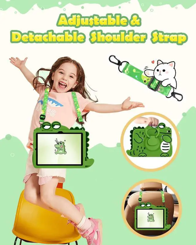 Shoulder Strap: If you purchase this for Samsung tablet s9 fe case, you will receive a complimentary green cute shoulder strap, which is detachable and adjustable, making it easy for you to carry case for tab s9 fe case when you go out ^^