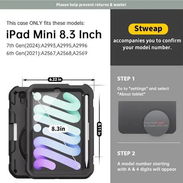 ^^ Serving: Fit for outdoor activities, free charge of Product Changes or Refunding after receiving products within 3 months & 6 months Warranty and Maintenance of Stweap iPad Mini 6 case!
