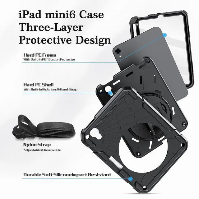 ^^ Material: The iPad Mini 6th generation case is made from high-grade thermoplastic polycarbonate and an anti-skidding silicone built-in screen protector, to create full-body protection for your iPad. Not only shockproof/durable but also comfortable hand feeling.