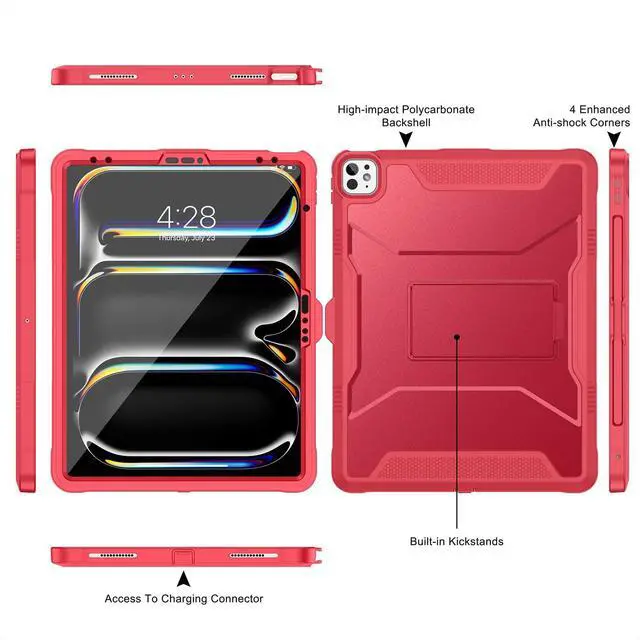 Rugged Armor Shockproof Protection Multi-layered hard PC back and flexible TPU bumper provide your iPad Air / Pro 13-Inch 2025 2024 & iPad Pro 12.9 2022 2021 2020 strong protection against drops,bumps, and impacts, also easy to install