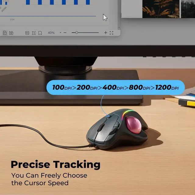^^: Consisting of a high-performance optical sensor, highly sensitive 3-point positioning technology and thumb control, the mouse delivers precise cursor movement, allowing you to quickly get to the desired position on the screen without moving your hand, thus increasing productivity and efficiency.