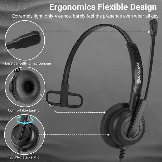 Protection Against Defects: The call center noise cancelling headphones with mic is built with tough design and sturdy materials. With a 2-year protection against defects for your peace of mind. Arama, backed by nearly 10 years headset industry experience. ^^ Crystal-Clear Audio for Professional UseEnjoy studio-grade sound quality with our computer headset one ear, optimized for crisp highs, and distortion-free clarity, or Zoom, Teams, and conference calls. ^^