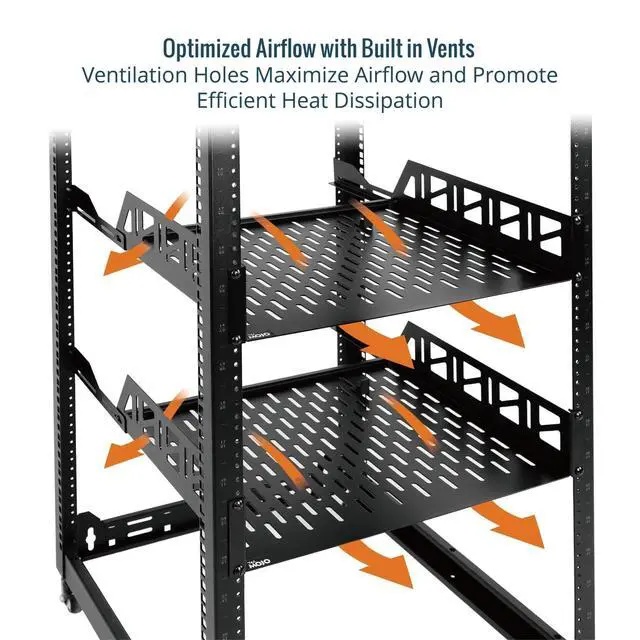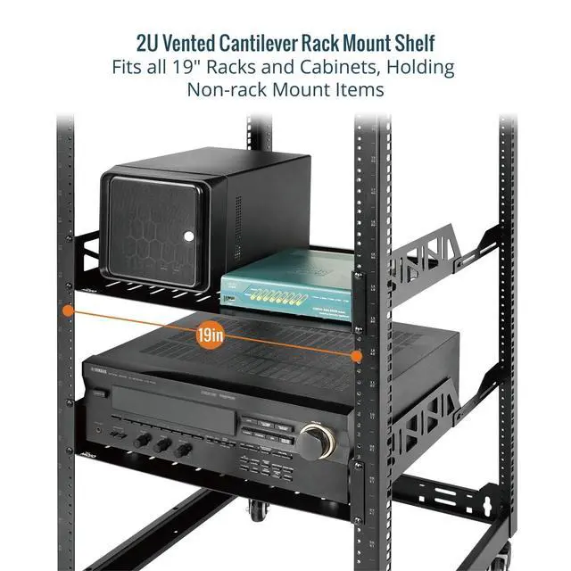 Easy to use: this 19" rack shelf is easy to install, with instructions or videos for reference; Accessories including installation kits, anti slip stop and cable tie, convenient for equipment protection and cable management ^^