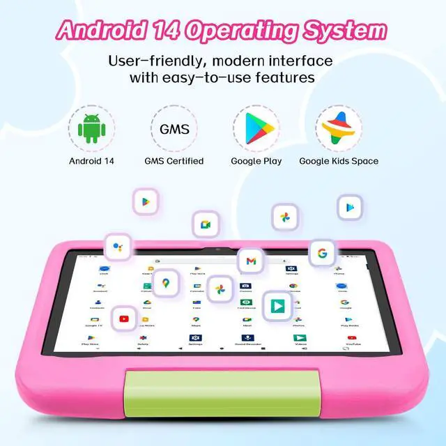 The low blue light technology and pre-applied screen protector help reduce eye strain during extended use. A kid-proof EVA protective case enhances durability, making it a toddler tablet that withstands daily use. With a 5000mAh battery, this 10 inch kids tablet is an excellent companion for long trips and everyday activities. Whether used for educational apps, interactive games, or creative play, the children tablet offers a balance of learning and fun. Backed by responsive customer support, this kids learning tablet provides peace of mind for parents and an engaging experience for children.