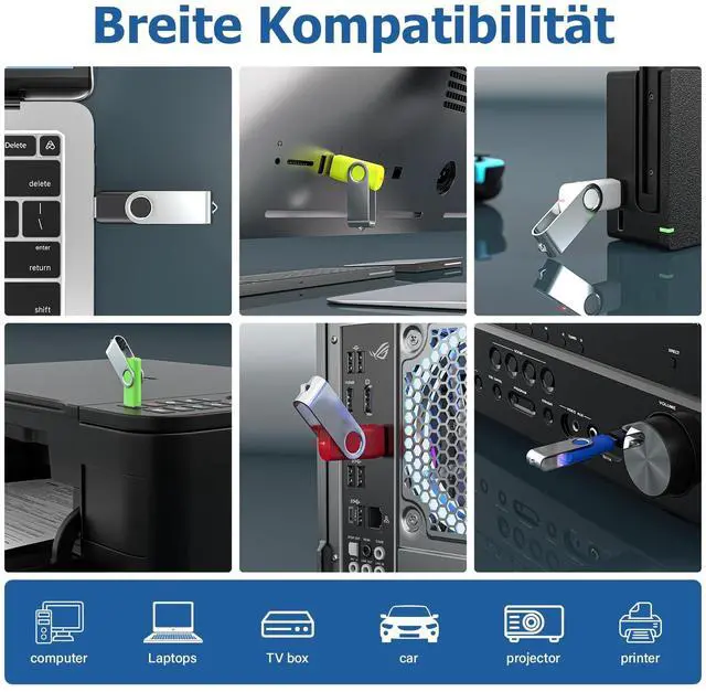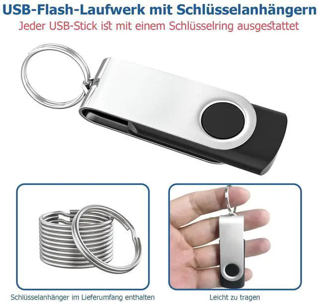 Versatile Storage Set: Get 10 packs of 64GB USB flash drives and keychains for easy storage and transfer of music, videos, photos, documents, and more ^^ These USB 2.0 drives work with USB 2.0 and older interfaces, requiring no additional software. They are compatible with Windows, Linux, Mac OS, and Chrome OS ^^