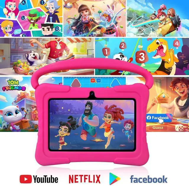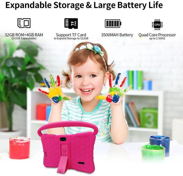 With its portable design, kids can take the tablet anywhere they go, whether it's hanging from a lanyard, in the car, or outdoors. ^^ Great Tablet for KidsKids not only can have their own private playground with a kid-friendly interface that makes it easy to use, but also can access fun and educational apps and websites without any unnecessary risks. Everything about NEWISION TABLET is tailored to the child's age and skill level. Effective games and apps are designed to provide children aged 3-12 with innovative digital educational content such as learning about animals, clothes, fruits, typing and more.
