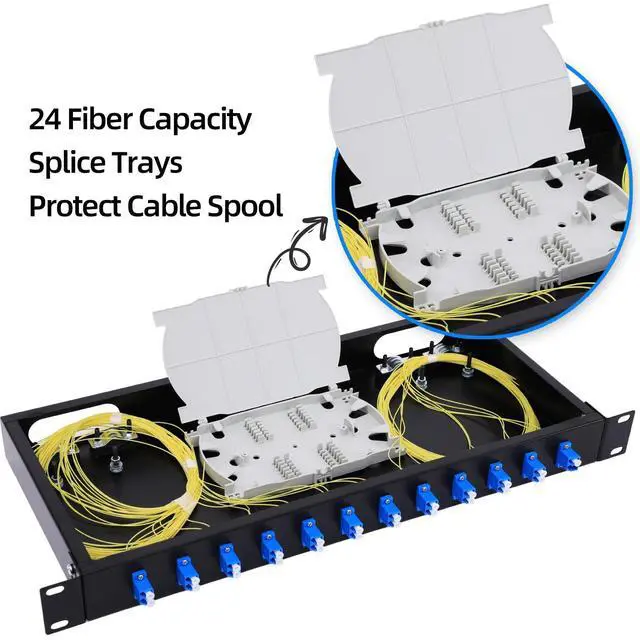 Rack Mount LC-OS1 Kit LGX Panel Fiber Enclosure - Set of Accessories is Complete Include Splice Trays 24 Strand LC SingleMode Pigtail + Duplex Fiber Couplers, The Optical Fiber Couplers is Configured and Fiber Pigtail cables are inserted neatly. Easy to Use-Fits 19 inch Rack Cabinets1. Fiber termination box features a completely secured fiber enclosure space. No other fiber optic box blends this well into a wiring closet and provides this level of security in a wall mount fiber enclosure. Fiber enclosure wall mount solutions need to be flexible and allow for all types of fiber termination.