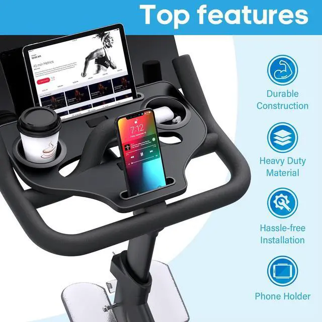 Unique designed holder tray for New Working Style! This spin bike tablet phone holder would be a total enhancement to your work out experience, get your work done and burning off the calories at the same time! Multi-functinal accessory for your peloton bike. Premium holder for you while riding your spin bike! ^^ Compatible with Peloton Bike and Well Constructed. Does NOT fit for the Bike Plus! This phone holder tray fits onto your Peloton Bike's handlebars perfectly. Constructed with premuim and thick ABS for durability and easy cleaning. The stains or sweat can be easily wiped off.