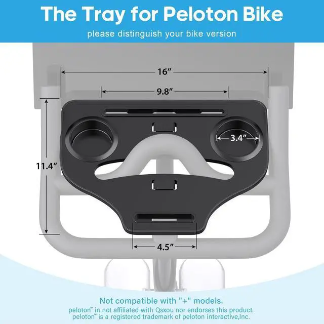 Note: please do not lean your body compeletly on the board. ^^ Easy to assemble. You can use it within minutes. The holder tray can be mounted on the handlebars in seconds flat without hardware. Two adjustable straps helps it to stays securely in place. Protectes your cups phone or tablets firmly. ^^ Equipped with special designed 2 cup bottle holes and 1 phone holder and 1 tablet holder, perfect holder for your tablet, phone, books, headphones, tv remote, snacks, and more. The slot on the tray is 4.5 '' in length and is suitable for most phones. ^^ Makes A Great Gift. Userfriendly and ergonomic design. Nice looking, a great gift idea for your friends, families and yourself on birthday, velantines day, thanksgiving day, christmas and more. We stand behind of our products, Any problem, feel free to contact us and we will reply in 24 hours and provide the solutions for you effciently. This desk attachment is for Peloton Bike, NOT Bike+.