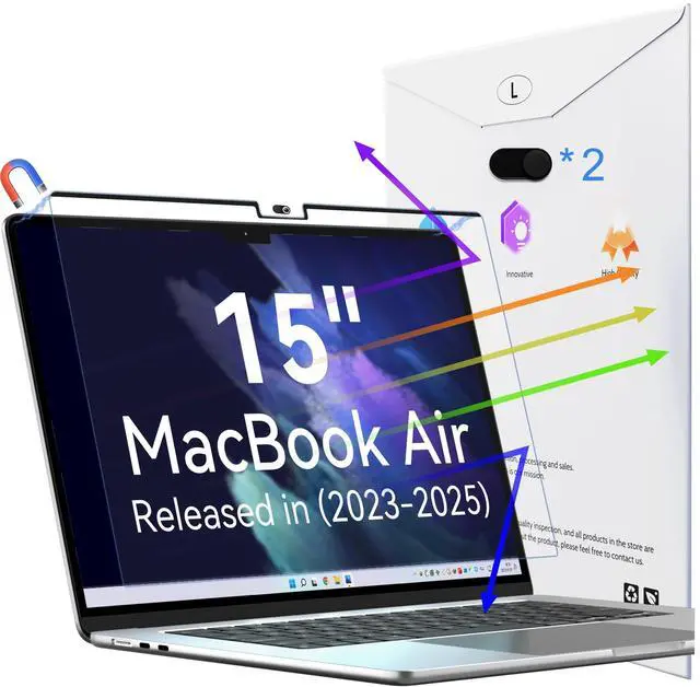 COMPATIBLEPeslv anti blue light screen protector is made using 1:1 real-machine modeling for precise dimensions. It is specifically designed for 15-inch MacBook Air models released in 2023, 2024, and 2025. ^^ SUPER EASY INSTALLATIONPeslv macbook air screen protector uses a magnetic installation method. The top bezel integrates magnetic functionality; aligning the screen protector's top bezel with the MacBook screen's top bezel and gently pressing will complete installation within one second.