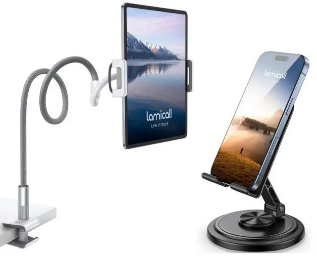 Lamicall Gooseneck Tablet Holder x1 & Lamicall 360 Rotating Adjustable Phone Stand for Desk x1